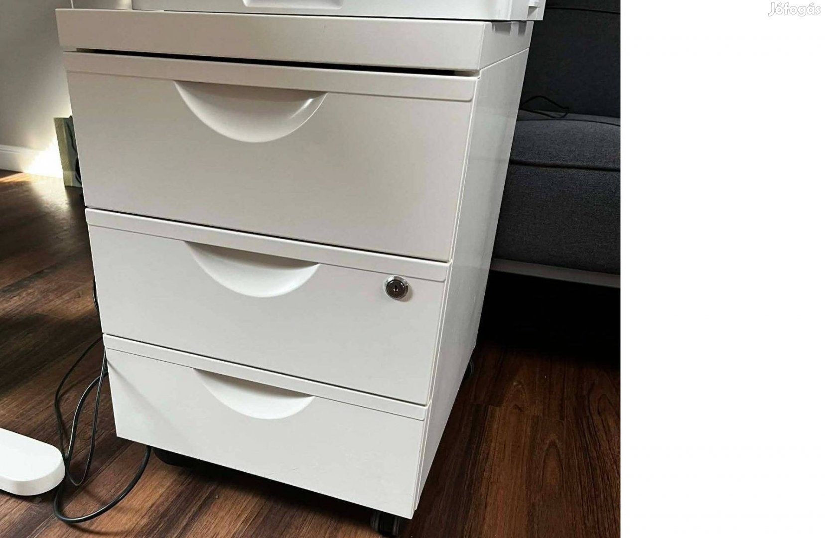 Eladó több darab fehér színű, 3 fiókos irattartó konténer. Görgős kialakításának köszönhetően könnyen mozgatható, praktikus megoldás irodába vagy otthoni munkasarokba.