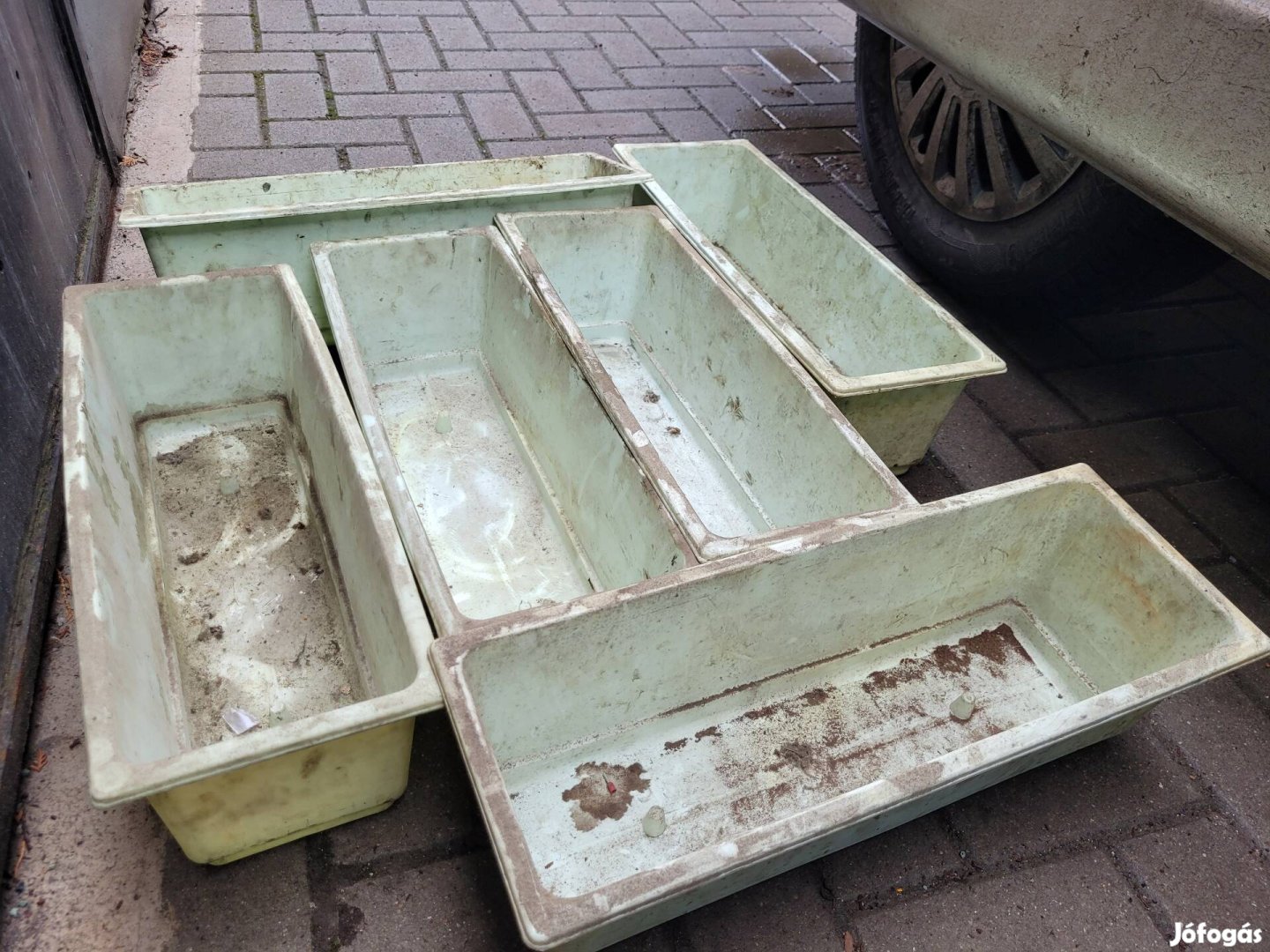 Eladó a képeken látható használt koszos virágos edények tárolásra 50x19cm 15 magas.