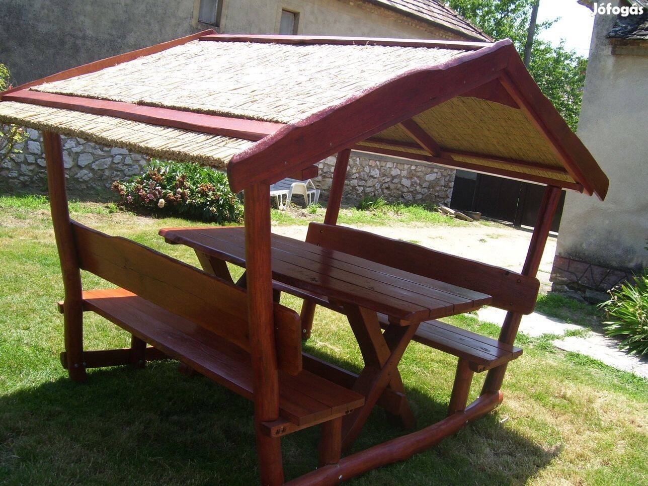 Nádtetős kerti kiülő akác oszlopból tölgy lapokkal