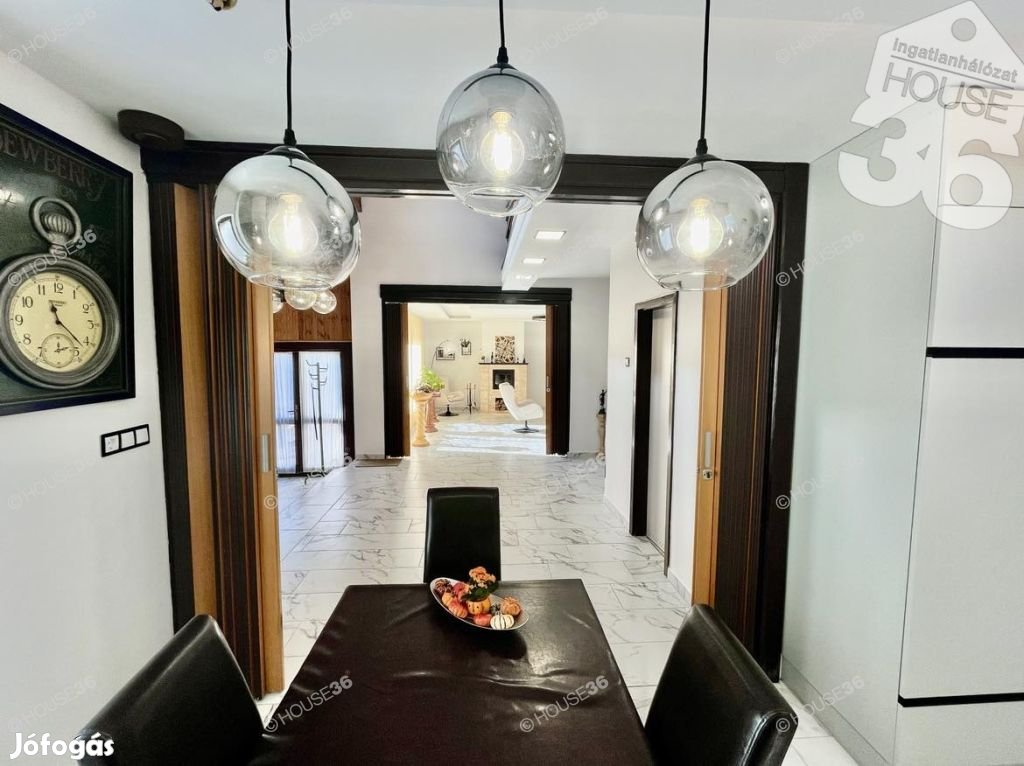 Kecskemét belvárosában a MALOM Bevásárlóközponttól 5 percre, csendes utcában 384 m2-es telken, 220 m2 lakóterületű, alatta 70 m2-es szuterénnel, 5 szobás egyedi tervezésű, exkluzív családi ház eladó!