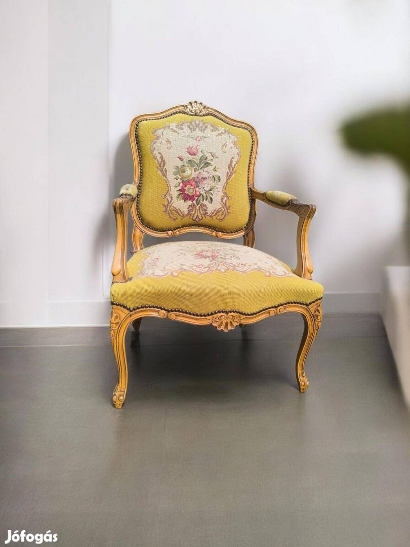 Eladó egy neobarokk stílusú gobelines karosszék.