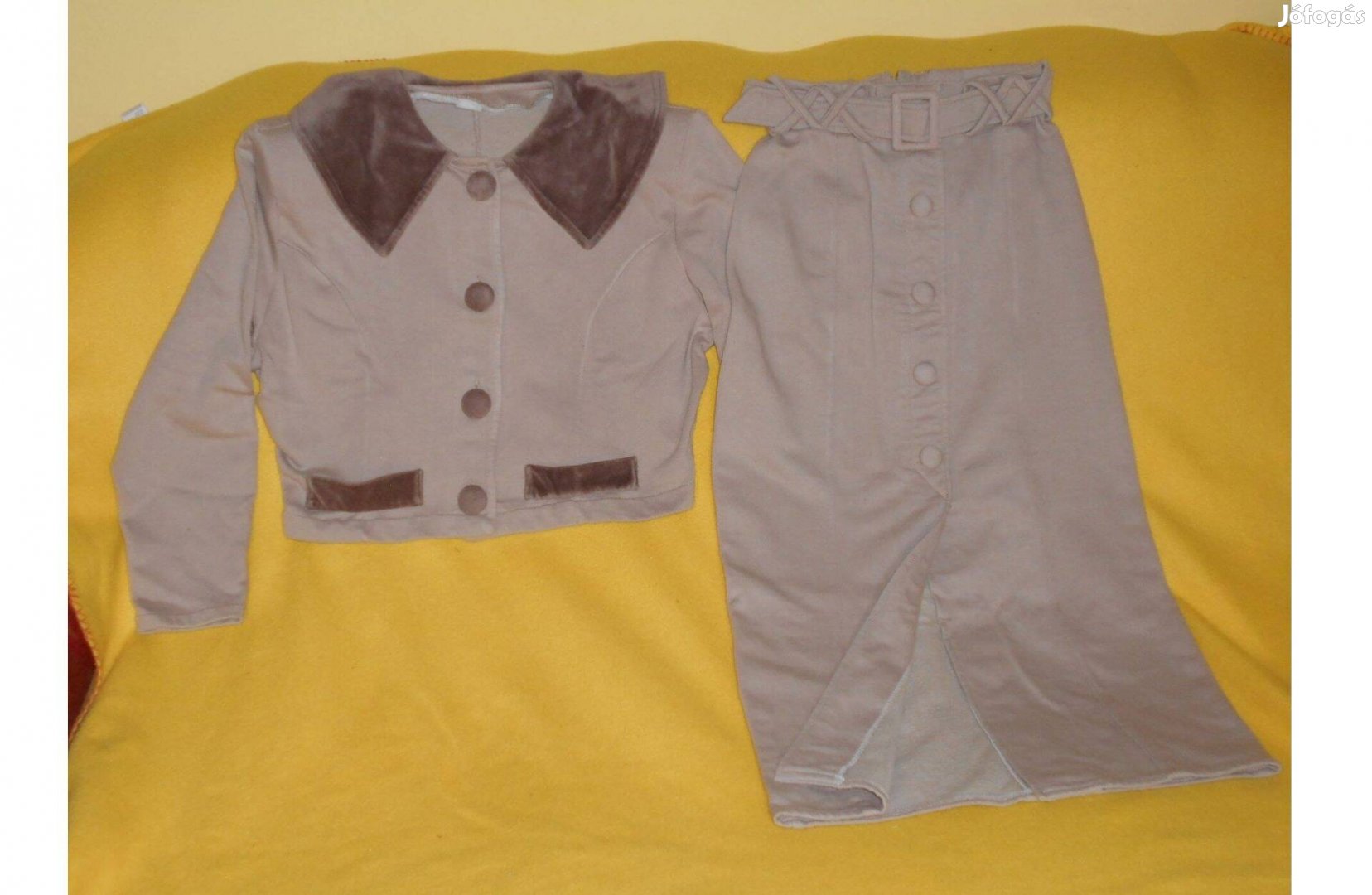 - Kabátka: barna, díszes - szép, nagy gombokkal.