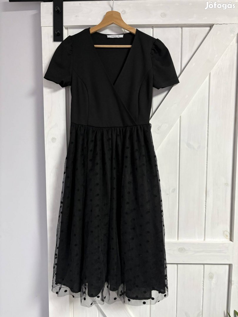 Fekete, v nyakkivágású ruha tüllös felsőszoknyával