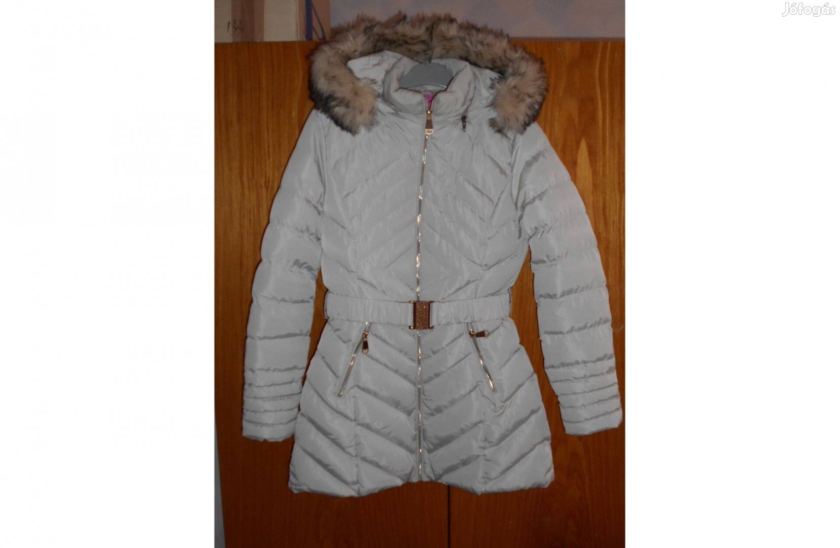 Női télikabát, bundás bélés, szőrmés, hosszított, csinos. M- es