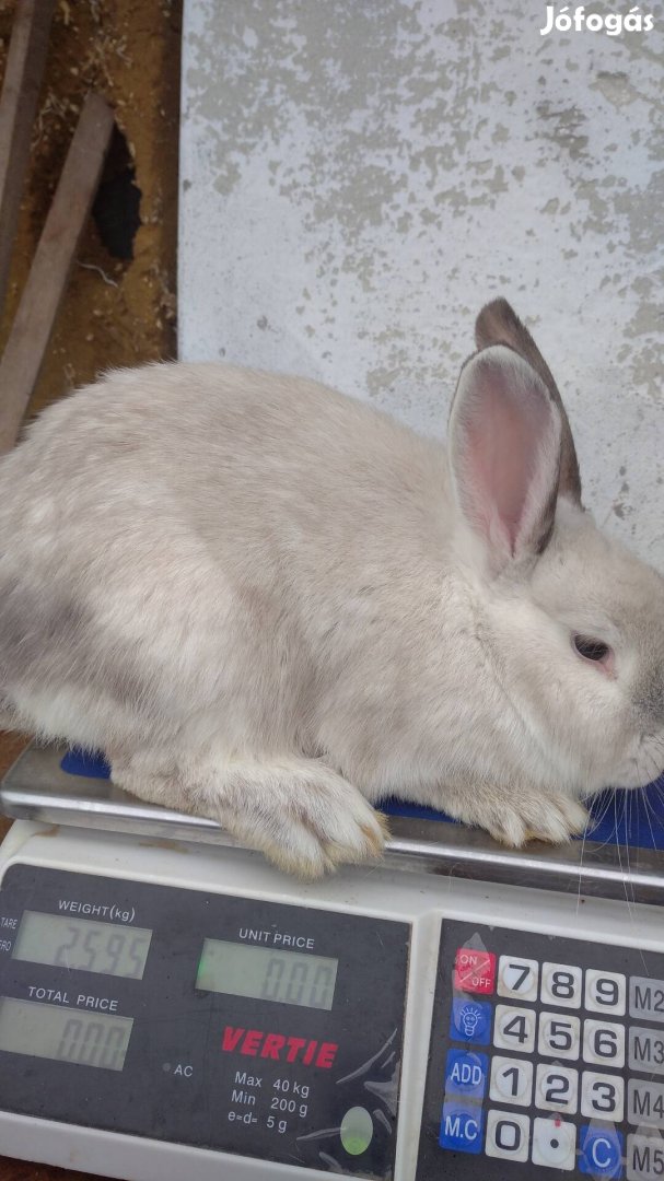 Hét hónapos nyulak eladók! Nőstény és bak is. A bakokat jelöltem. Ezen felül van még fiatalabb is. 1500/kg. Igény esetén konyha készen is. 2800/,kg.