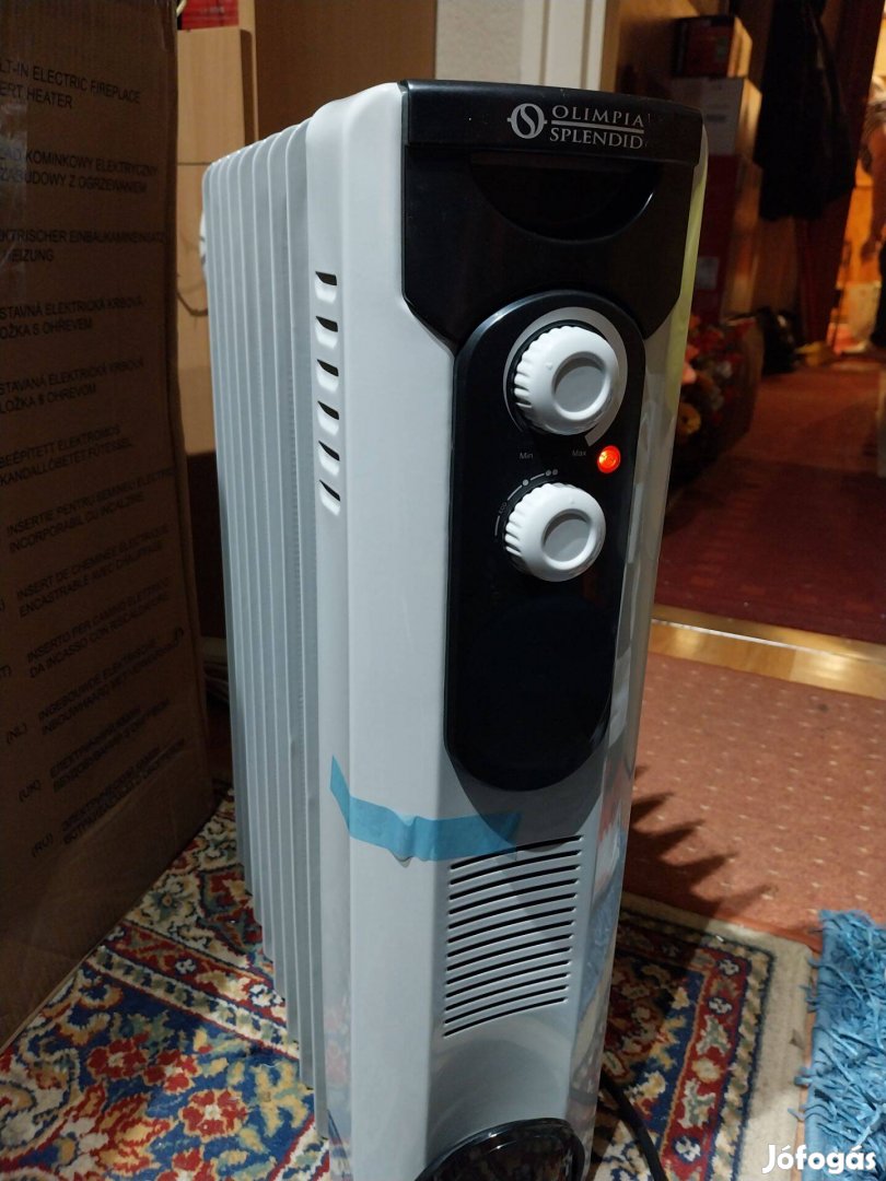 Az Olimpia Splendid Caldorad 9 több fokozatú, hőfokszabályzós, 2000 W-os, kerekekkel rendelkező olajradiátor. Magassága 59 cm, hosszúsága 42 cm, szélessége kerékkel 24 cm. Nem volt még használva, csak kipróbálva. Helyben tudok segíteni a szállításban, a város közelében megbeszélés szerint.