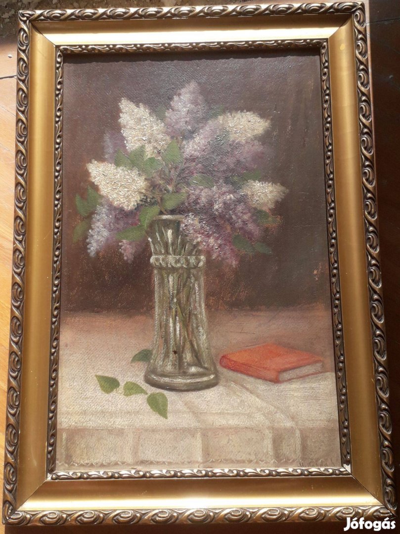 Kortárs, jelzett szép orgona csendélet festmény 71x50 cm ,míves keretben retró, régiség eladó