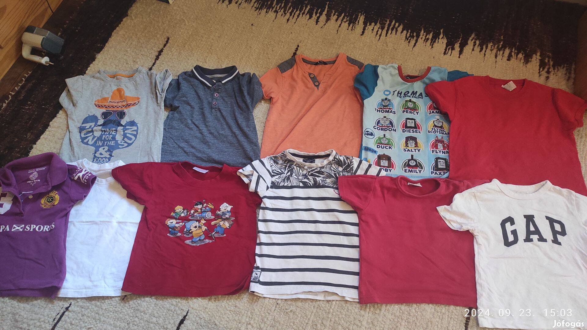 Vásárlás előtt kérlek feltétlen egyeztessünk a szállítási lehetőségekről. Eladó a képen látható kisfiú ruhacsomag. A ruhák használtak, de bőven hordható állapotban vannak, van olyan, ami újszerű.