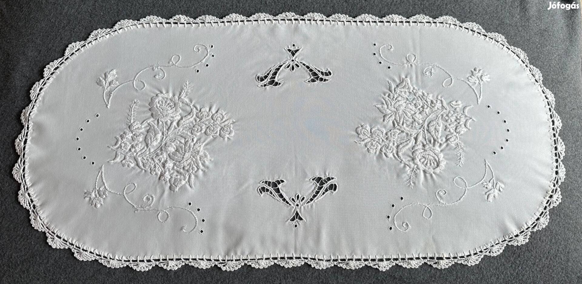 Eladó egy ovális, hímzett terítő csipkeszegéllyel. Szép lakásdekor. A nagymama készítette.