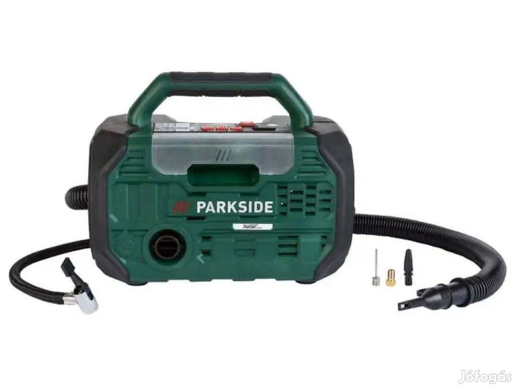 www boltkozpont hu webáruházból GLS házhoz szállítással is megrendelhető....014...87..380759................. Akku nélkül szállítjuk................... Kompatibilis a Parkside X 20 V Team sorozat összes készülékével. Kompresszor nagy légnyomással: ideális bicikli kerék és felfújható játékokhoz sportszerekhez Előre beállítható nyomás automatikus kikapcsolással LCD kijelző bar vagy PSI nyomáskijelzéssel Maximum nyomás: 10,3 bar (150 psi) Pumpa: Ideális nagy mennyiségű levegőhöz, például felfújható matrachoz, csónakhoz, egyéb strandfelszerelésekhez Levegő leengedéséhez is megfelelő Légszállítás: 380 l / pe