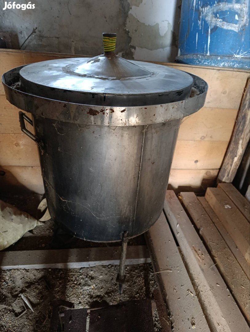 Eladó 130 literes rozsdamentes acélból készült pálinkafőző üst. Alul dupla falú.