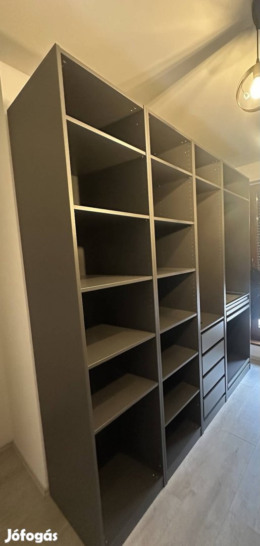 Pax gardrob szekrény. Ikea vásárlás számlájával eladó. Szétszedett állapotban van. Posta nem megoldható. Van még egy ugyan ilyen szinte, az is eladó. Az ár az egyik szekrényre vonatkozik. Új ára 284.000 Ft volt. Van benne ékszertartó, fiók, nadrág tartó , akasztós rész is. A másikban is ugyan ezek megvannak. Méret ami a képen látható 2 m 24,5 cm széles, 2 m 36 cm magas , 58 cm mély. A másik ugyan ez csak 3 m széles.