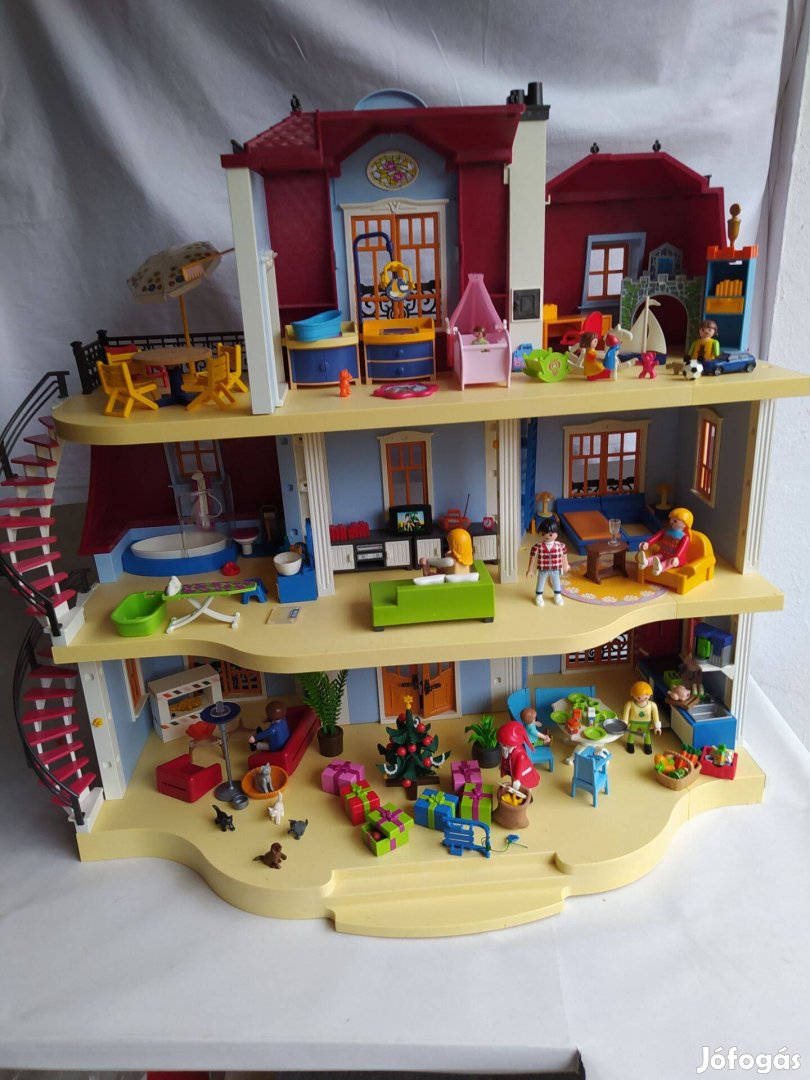 Playmobil 70205 nagy babaház berendezve életképekkel, mikulással, karácsonyfával, elemes világító kandallóval, elemes csengővel, szép állapotban.