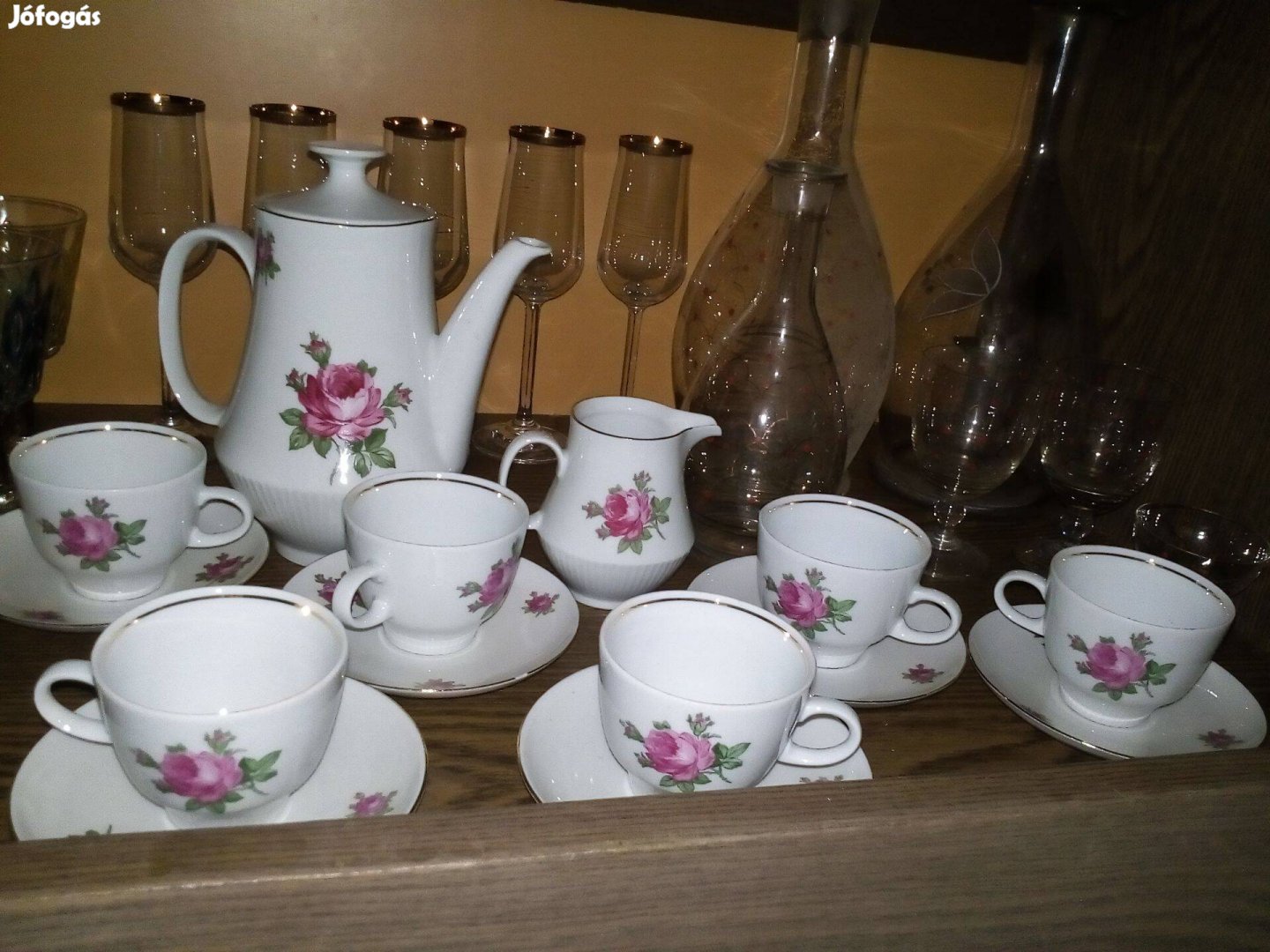 Eladó Kecskeméten a képen látható, rózsamintás, porcelán, kávés készlet remek áron!