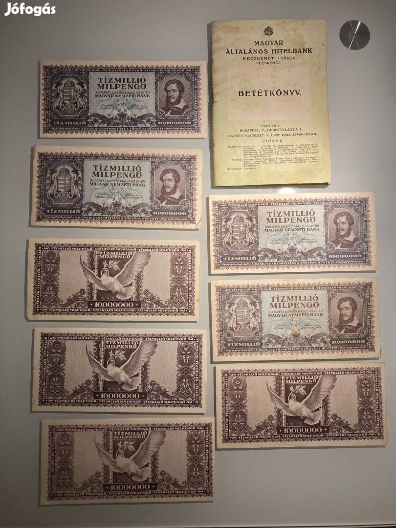 8db tízmillió milpengő és egy szép kézzel írott betétkönyv együtt eladó!