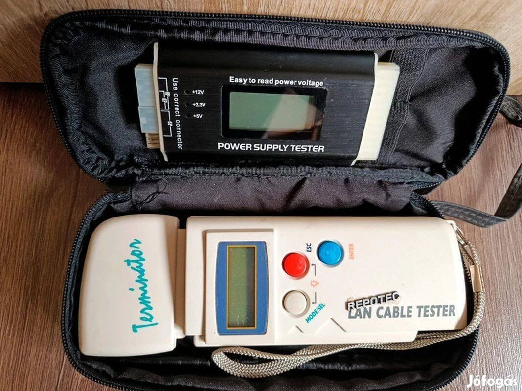 LAN kábelteszter: RJ-45 csatlakozókkal ellátott hálózati kábelek folytonosságának, rövidzárlatának és bekötési hibáinak ellenőrzésére szolgál.