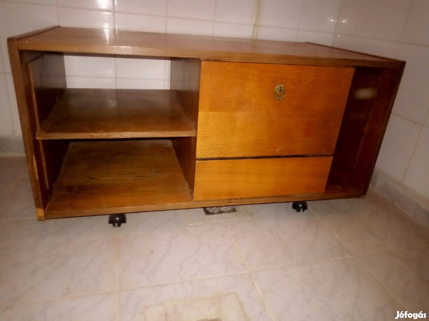 Retro gurulós bárszekrényes dohányzóasztal 104x58cm a képeken látható állapotban eladó.