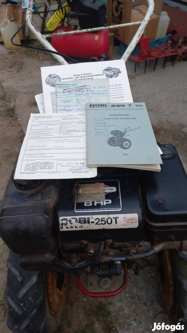Eladó a képeken látható,jó állapotú robi 250T rotációs kapa gyári állapotban.Összes gyári vételi papírokkal vihető.