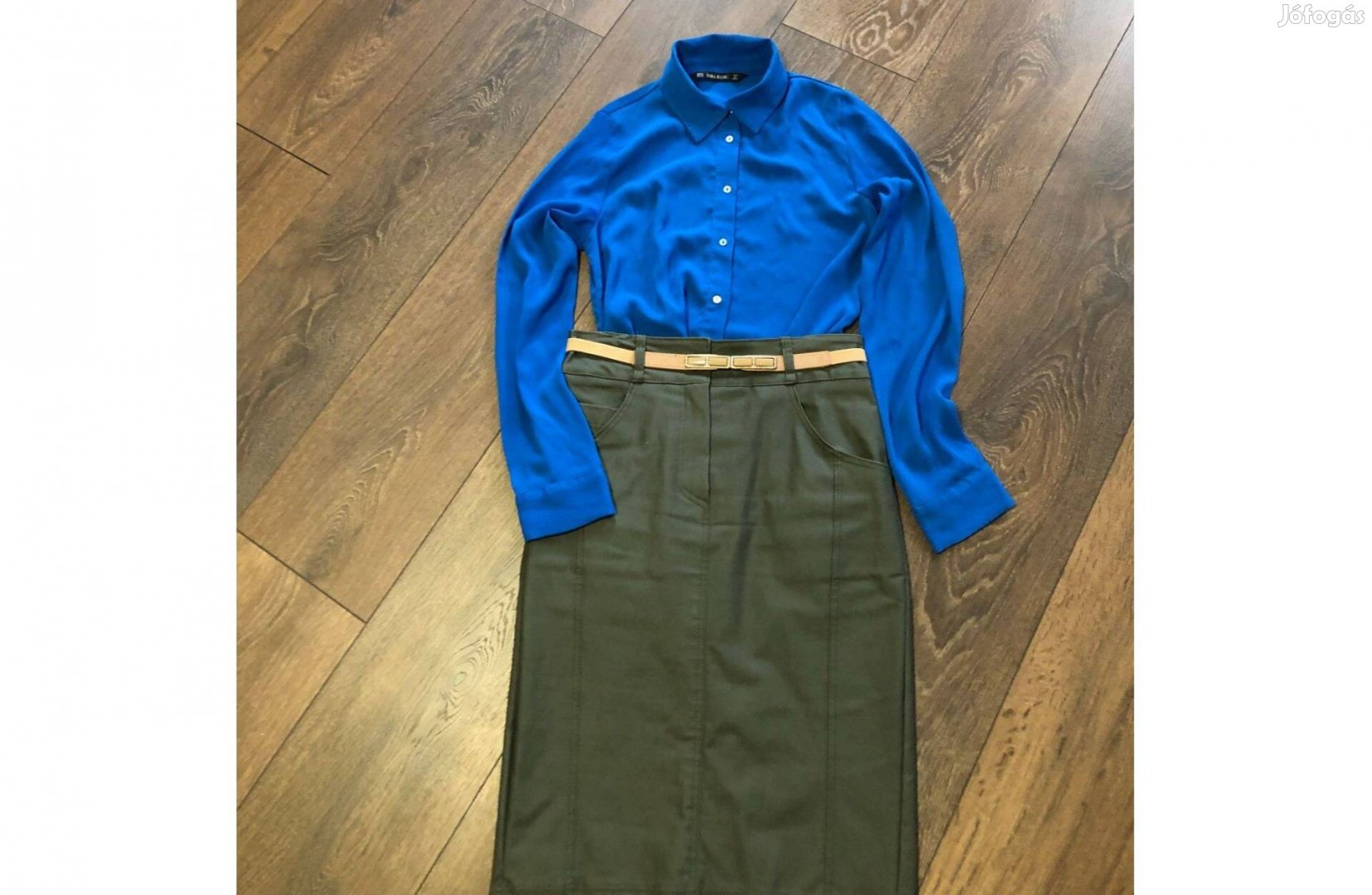 Eladó a képeken látható egyszer használt Rouge S-es bőrhatású zöld szoknya, ajándék Zara blúzzal.
