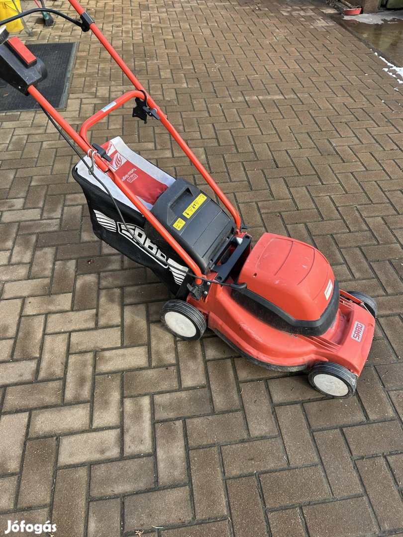 Eladó használt jó állapotú felső kategóriás elektromos fűnyíró. Egy gombnyomással magasság állítás.