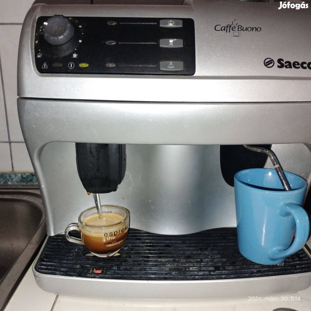 Saeco autómata darálós kávéfőző. Egy főzés egy vagy kétadagos beállítás. Kávé adag kézi beállítással, ristrettó-piccolo-presso-hosszú álltható akár adagonként. Porkávé és teafőzési lehetőség. Gőzőlőcső kapuccinohoz. Ez még manuális beállítású nem bonyolult mint az új gépek. Finom, szép habos kávét főz. Könnyű, egyszerű karbantartás. Karbantartási kézikönyvet is adog hozzá robbantott ábrákkal. Alkatrész fillérekért pótolható. Kis műszaki érzékkel nem kell hozzá szervizes még nagyjavításhoz sem. Teljesen működő képes. Minden funkciója helyszínen próbálható. Régi gép, de nem ütött-kopott, nem szétszaggatott.