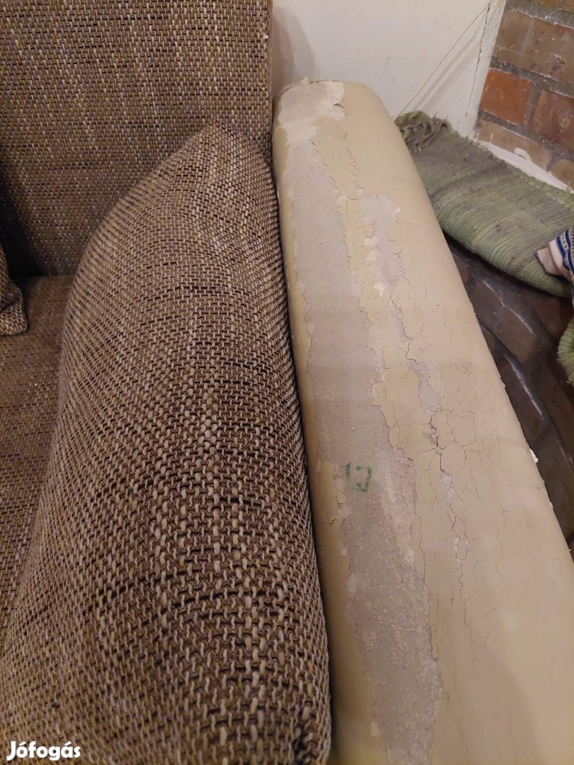 Ágyneműtartós sarokkanapé megkímélt állapotban eladó. Anyaga textilbőr-szövet. Ággyá alakítható, méretek: 230 széles, fekvőfelület: 200×155. A karfákon lévő textilbőr kopott, sérült (javítható).