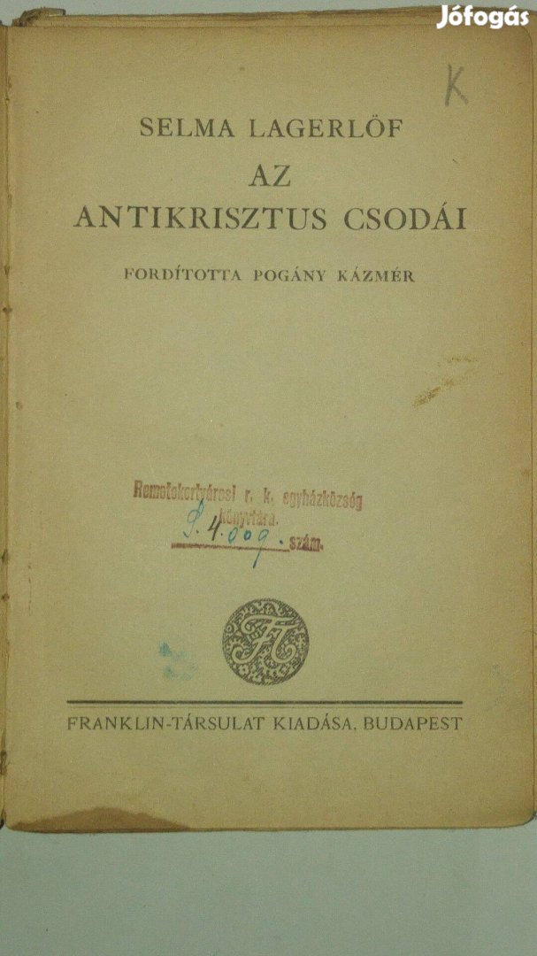 Franklin kiadó, borító oldala hiányzik, jó állapot, kemény.