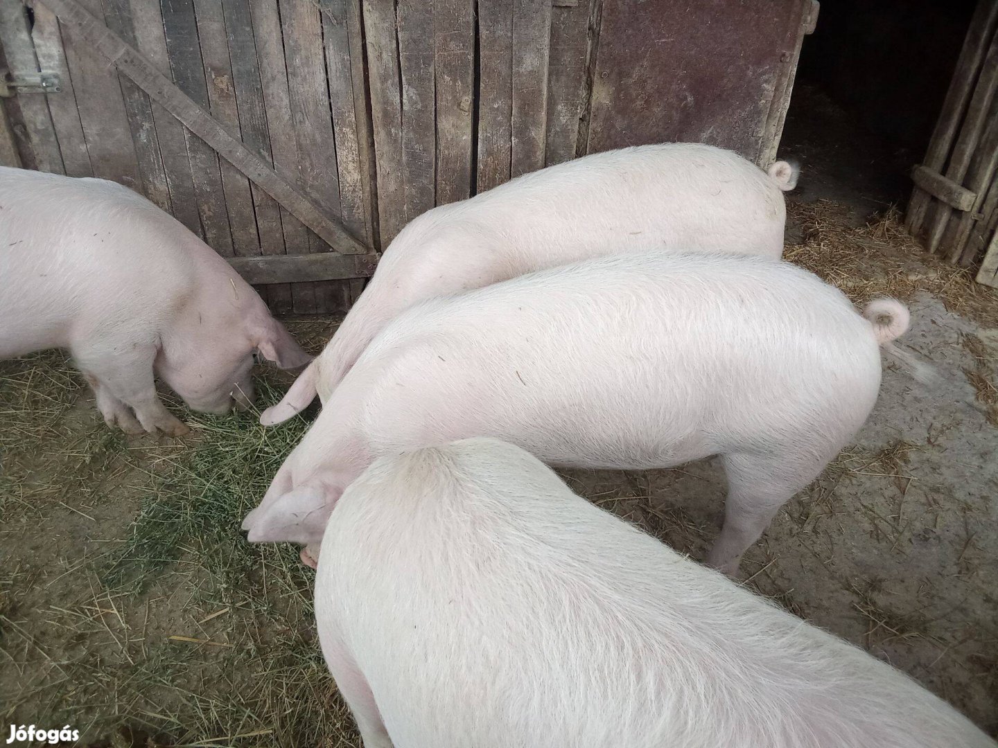 Eladó négy db 60-70kg körüli hízók,3 db nőstény 1 db ártán.Háztái darán nevelkedtek.További információ,alábbi telefon számon lehetséges..Köszönöm.