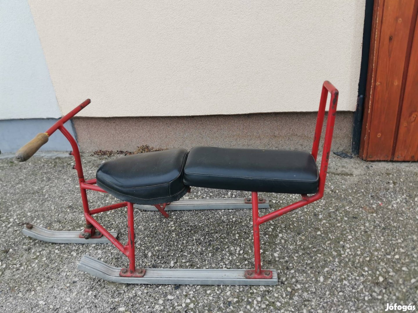 Képeken látható szánkó kétszemélyes alumínium talpakkal fém csővázas könnyü mégis erős felnőteknek is, kormányozható az elsőtalp silentblokkal csatlakozik igy biztosítva a rugalmas csatlakozása a kormányhoz, vontatható szemhez kötél köthető. Piros színű a váz fekete bőrülések. Kedvező 12000Ft 01.23.tol kedvezőbb 10000 Ft