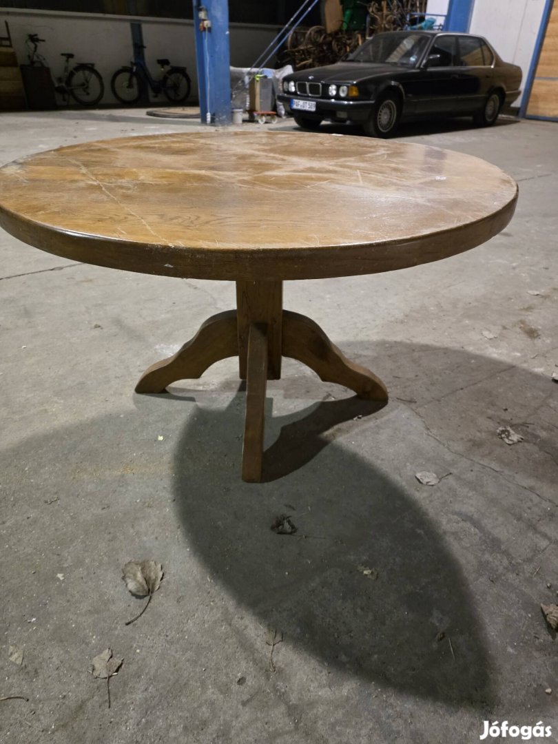 128cm átmérő 78cm magas 5.5cm vastag tiszta tömör tölgy asztal lap .szállításban esetleg segitek BP is. Felületén karcok .felcsiszolás lakkozás után gy