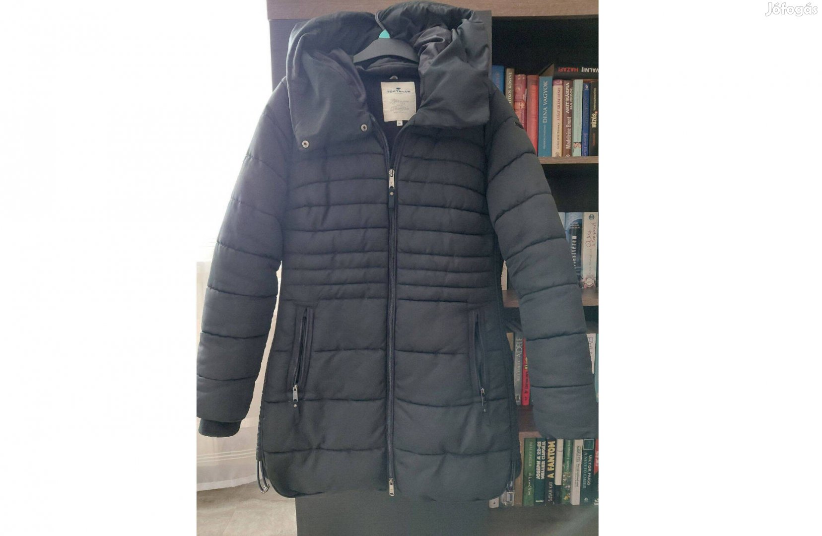 Tom Tailor mélyzöld, 3/4-es méretű téli kabát. Oldala húzózsinórral állítható, karcsúsított, belseje bélelt. Az áll alatti résznél a mosás miatt a bélés elvékonyodott.