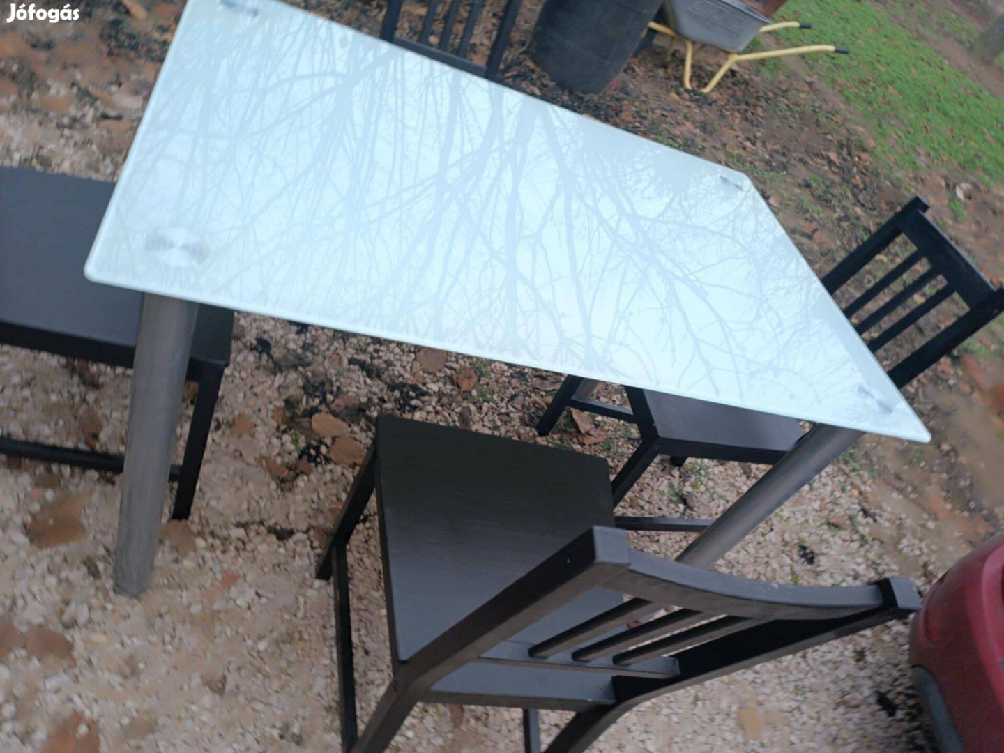 Eladó egy üveg tetejű étkezőasztal 4db székkel együtt.