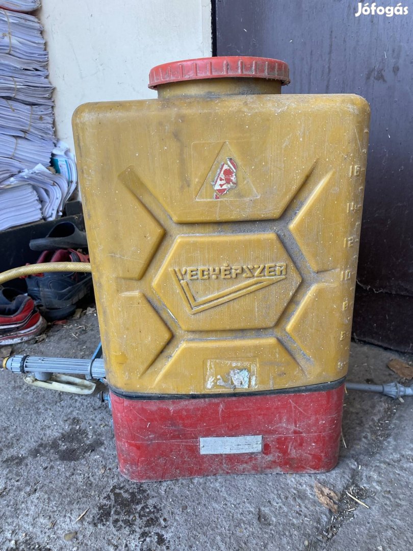 Eladó a képeken látható vegyépszer háti permetező, kézi hajtású.