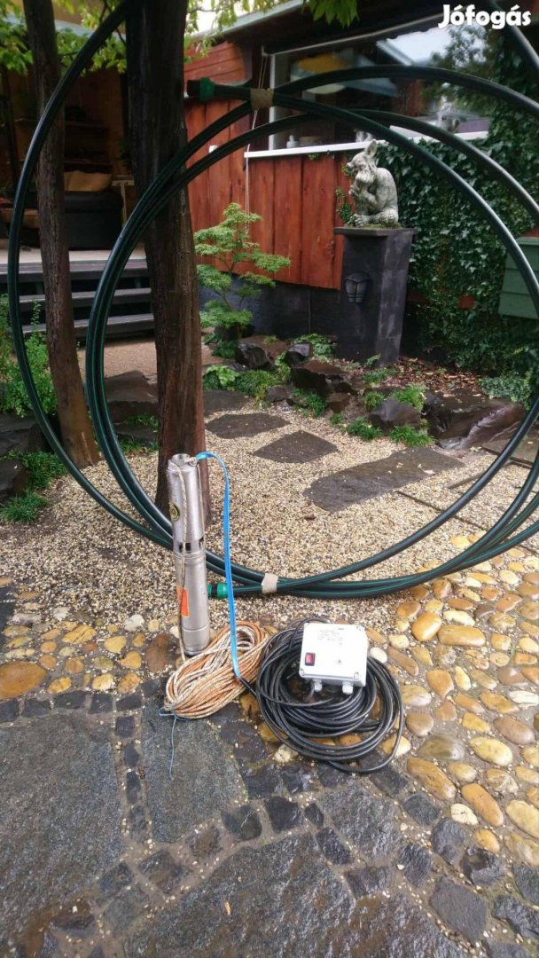 Ajándékba adom a képen is látható tartozékokat; az 5/4 collos PE csövet idomokkal, valamint a tartókötelet. Az elektromos vezeték és a kötél hossza kb 30m, a PE cső hossza 24m.
