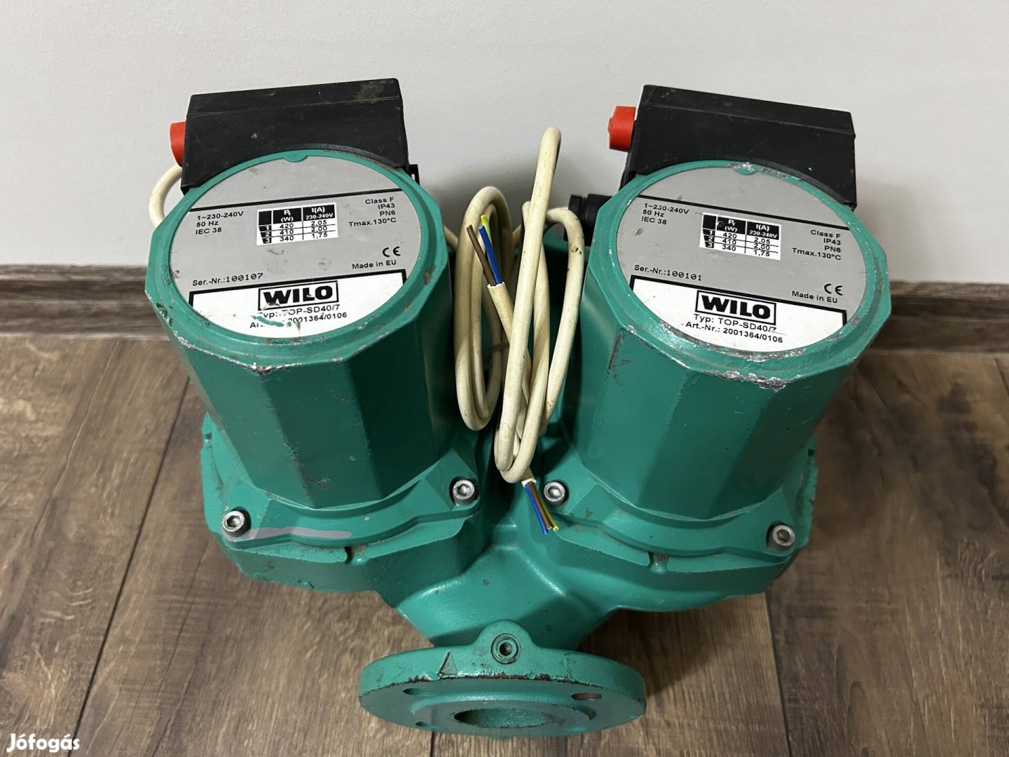 Eladó Wilo TOP-SD40/7 tipusú iker keringető szivattyú ,hibátlan működésű, DN 40 karimás csatlakozással , beépítési hossza : 250 mm , emelő magasság : 7 m, 230 V-os üzemeltetésű, 3 fokozatban állítható fordulatszámú ,adattáblája az utolsó képen.
