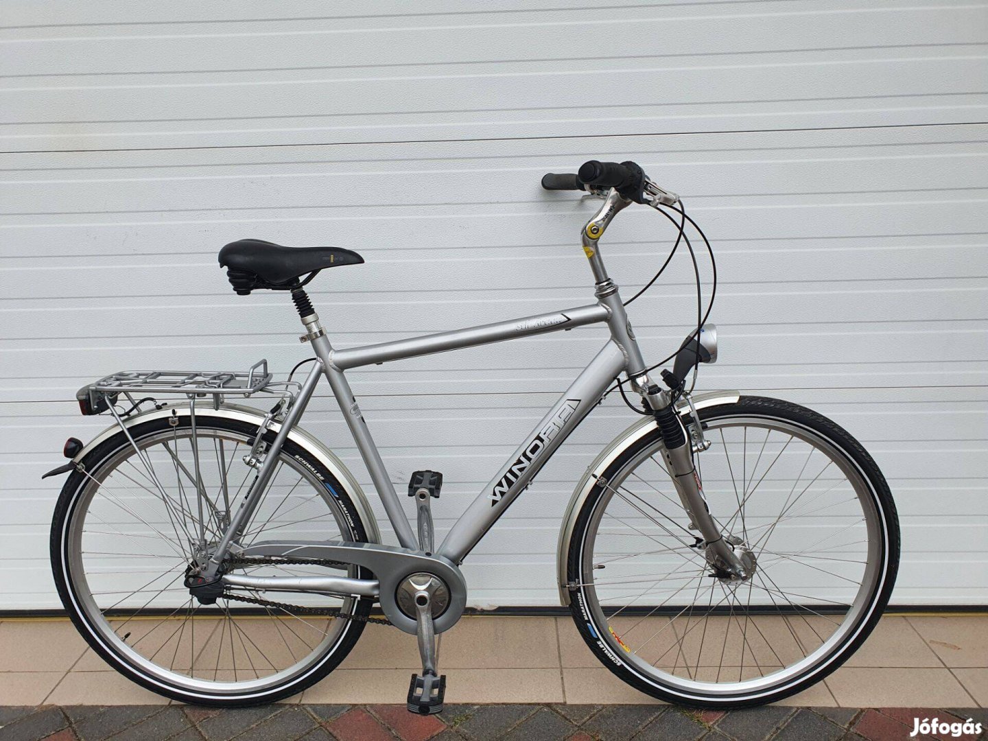 Winora 5th Avenue 28 colos 7 sebességes, agyváltós, aluvázas, agydinamós világítással, duplafalú felnikkel, újszerű gumikkal, állítható kormány nyak, elsőteleszkópos, ülésteleszkópos, vázmérete: 60 cm, leszervizelve Férfi kerékpár eladó Kalocsán.