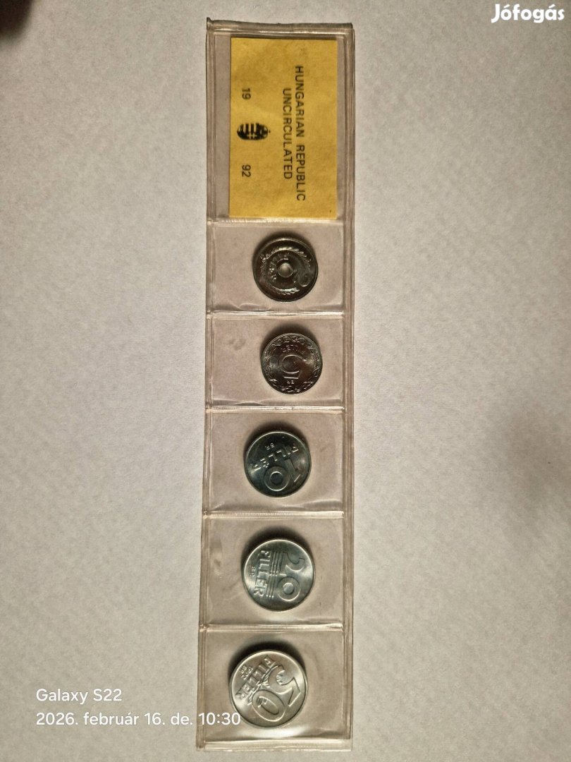 Eladó a forón látható bliszteres sorozat. Az 1992 volt az utolsó év, amikor a 2, es az 5 fillérest kiadták. Van 1996 os 20 filléres, és 1999 50 filléres is, ami szintén az utolsó kiadás.