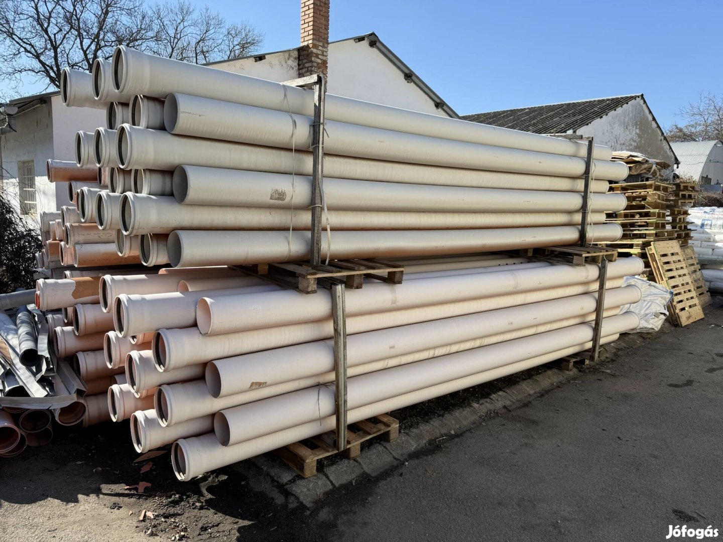 Elado a kepeken lathato epikezesbol megmaradt, fel nem hasznalt, napszivott 2023.05.18-as gyartasu, Wavin PVC-U csovek.