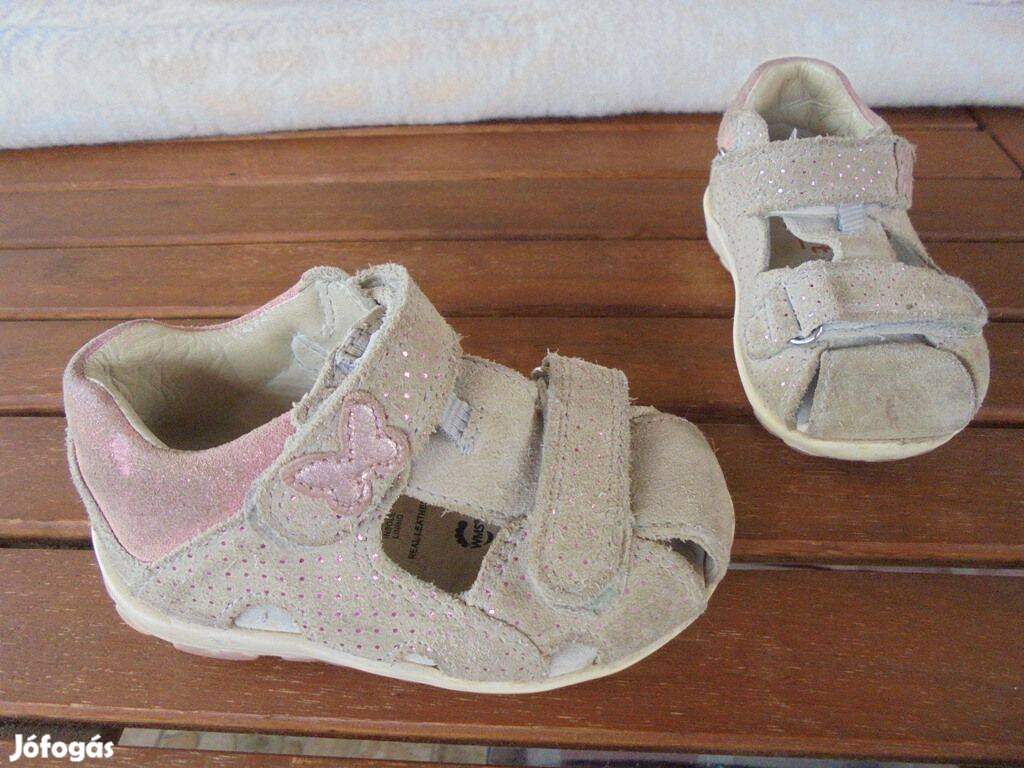 Eladó egy márkás lány szandálcipő a képek szerinti állapotban. Lábfejnél és bokánál tépőzáras, kívül-belül bőr. Szélessége M IV.