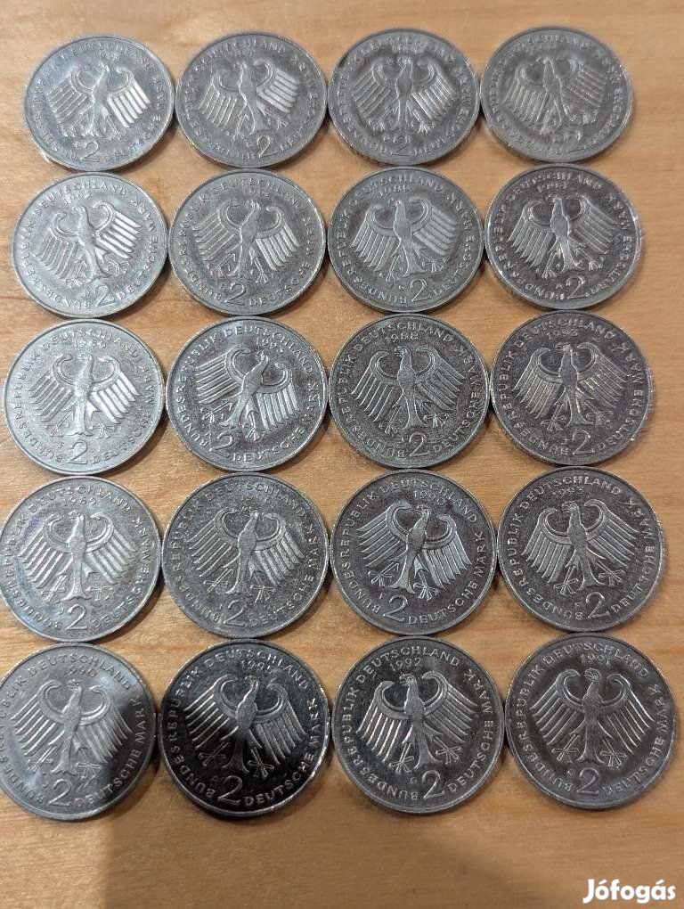 Eladó a kepeken látható 20 db Német NSZK 2 márkás érmegyüjtemény.