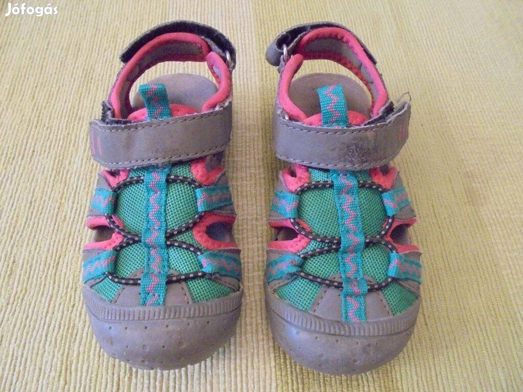 Eladó egy lány orrerősítéses szandálcipő a képek szerinti állapotban. Bokánál és saroknál tépőzáras, lábfejnél gumis.
