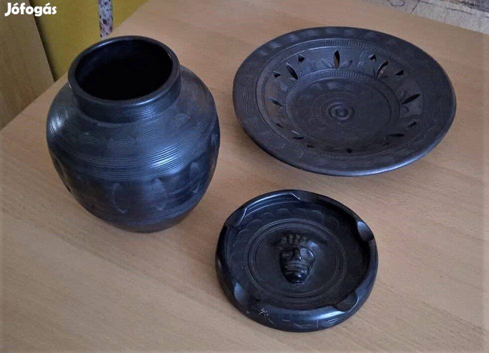 3 db. Fekete mohácsi kerámia Kovácsics Ferenc, Horváth János