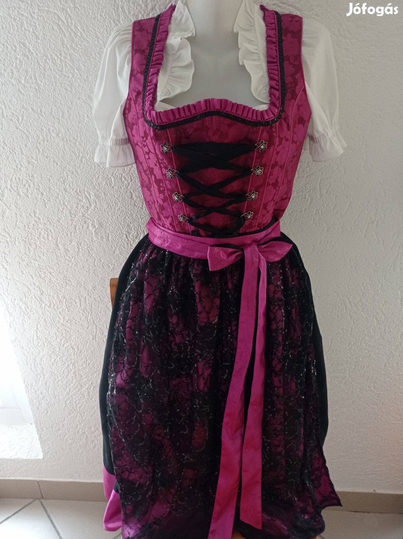 Stühle 40/42 dirndl ruha flitteres dupla köténnyel, blúz nélkül.