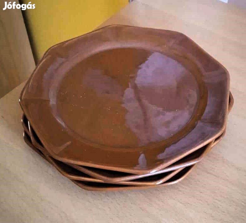 4 db. mázas kerámia 8 szögletű desszertes tányér