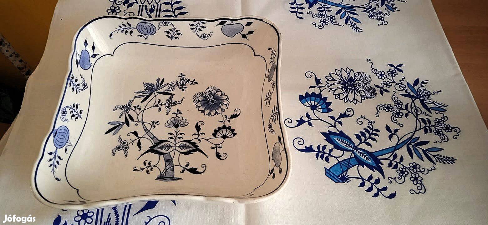 Antik Meissen-i hagyma-mintás szögletes tálaló+abrosz