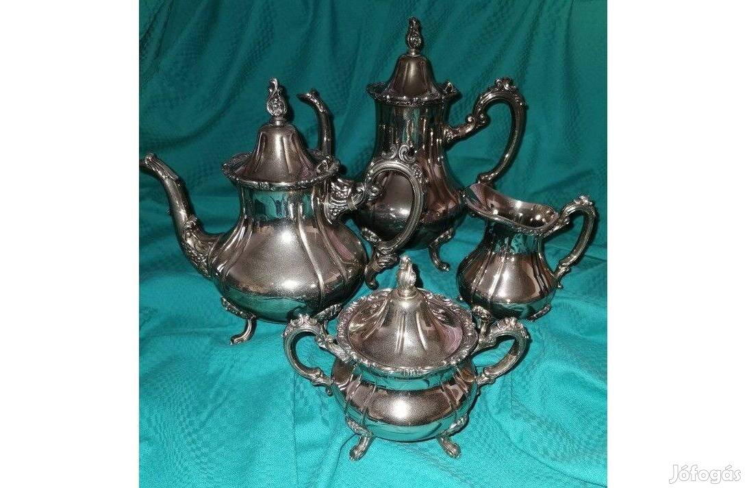 Antik ezüstözött alpakka 4 részes kávés teás kiöntő készlet