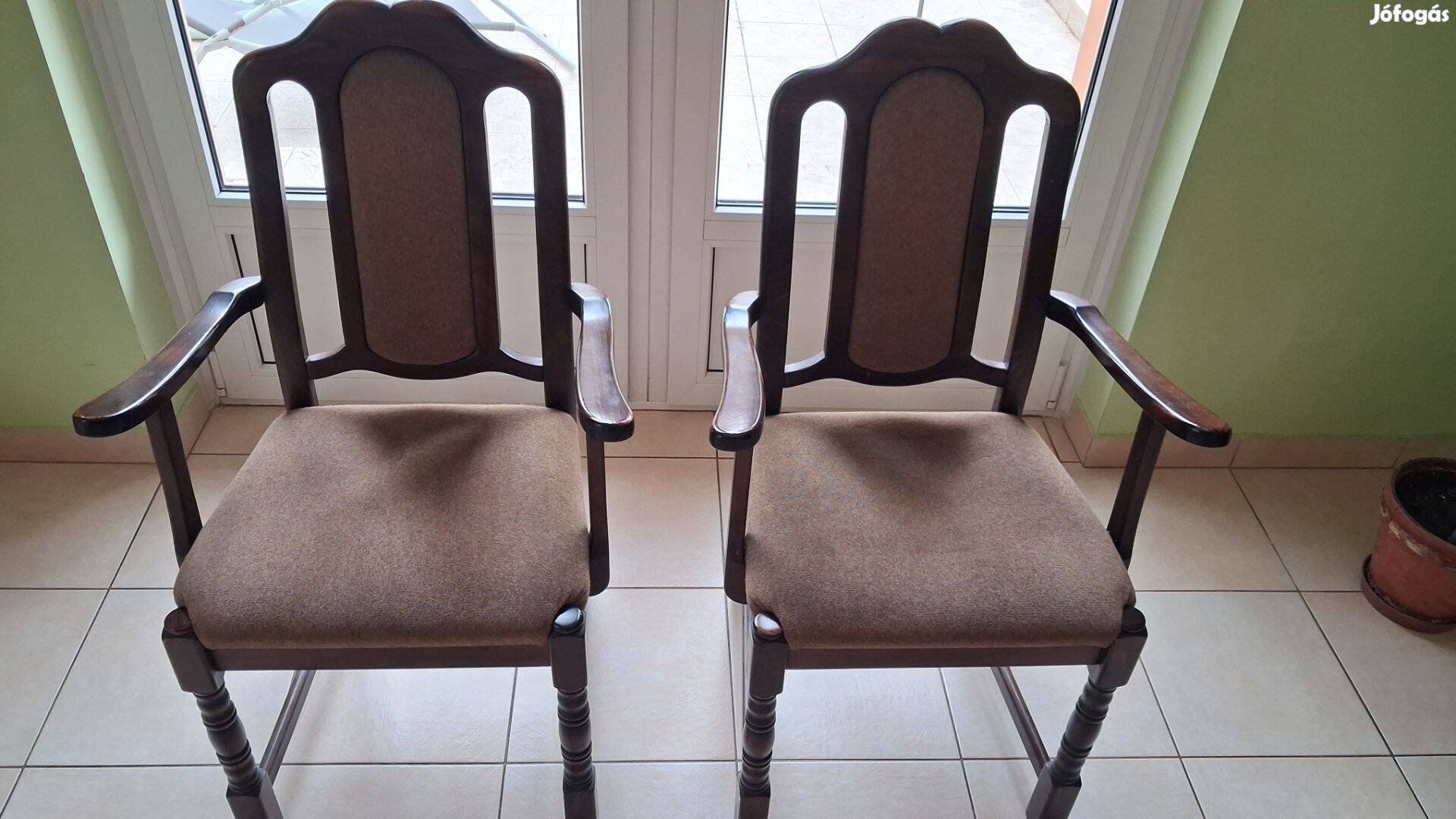 Eladoak a kepeken lathato antik jellegu szekek, karpitozott hattamlaval, ulofelulettel es karfaval.