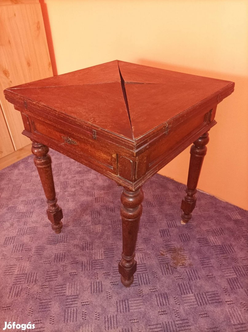 Antik kinyitható kártya asztal megvigyázott, de felújítandó állapotban eladó.