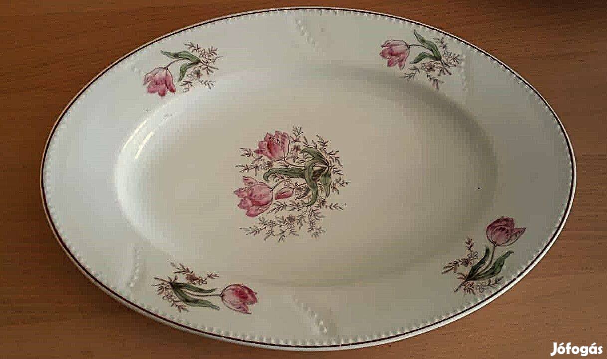 Antik nagy tál gyönyörű, finom pasztell virágos
