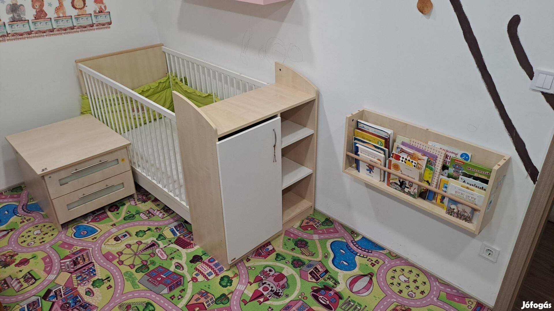 -A könyvespolcként funkcionáló rész a szekrénnyel összeépítve pelenkázó felületként használható